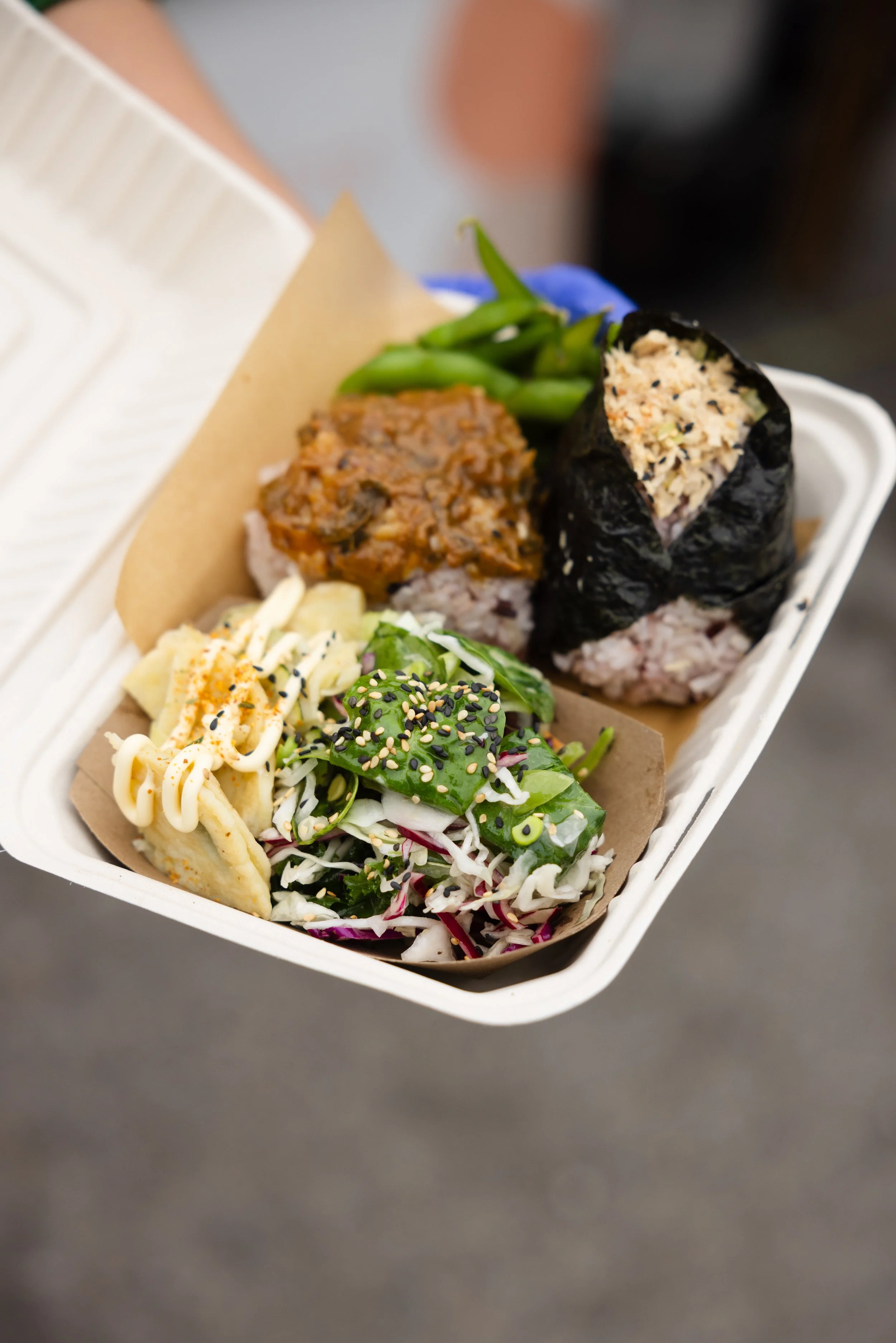 Kinoko Japanses Home Cooking creates their rice bowls and rice balls by using fresh farmers market produce and meat from local ranchers like Beffa Springs. Yuko is a local in West Marin who makes bento boxes for pick up!