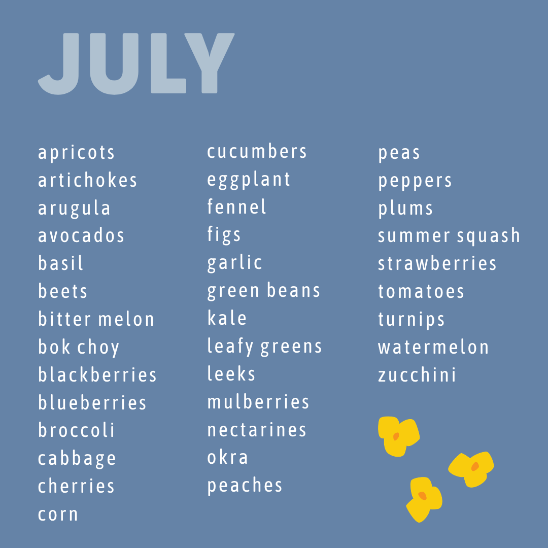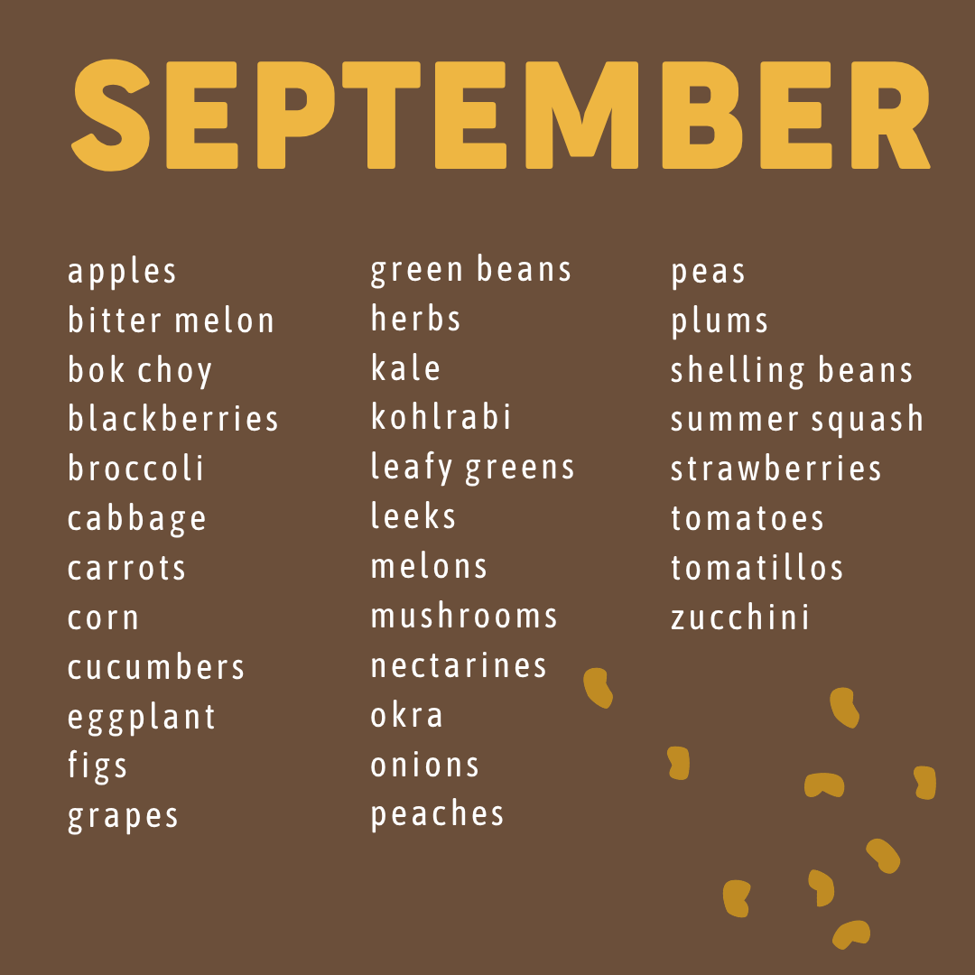 Seasonality isn’t exact—what you find at the farmers market may shift week to week depending on weather and harvest conditions.